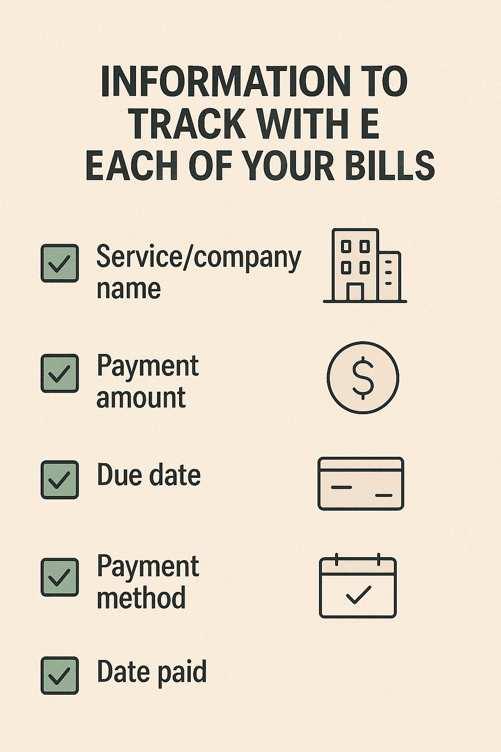 Don't rely on memory alone – set reminders for each bill. This might include: